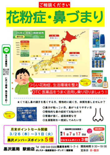 規則正しい生活と症状に合わせたお薬の服用で、この季節を乗り切りましょう😊