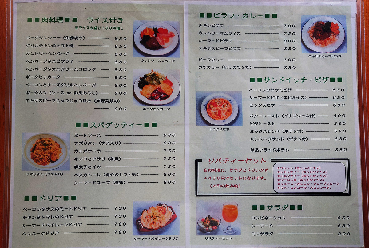 中でもカントリーハンバーグ、ビーフピラフ、ナポリタン、ポークジンジャーは不動の人気メニューです。